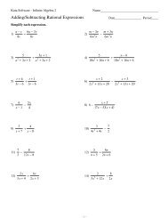 Free Algebra 2 worksheets created with Infinite Algebra 2. Printable in convenient PDF format. Test and Worksheet Generators for Math Teachers. All worksheets created with ... Simplifying rational expressions Multiplying / dividing rational expressions Adding / subtracting rational expressions Complex fractions
