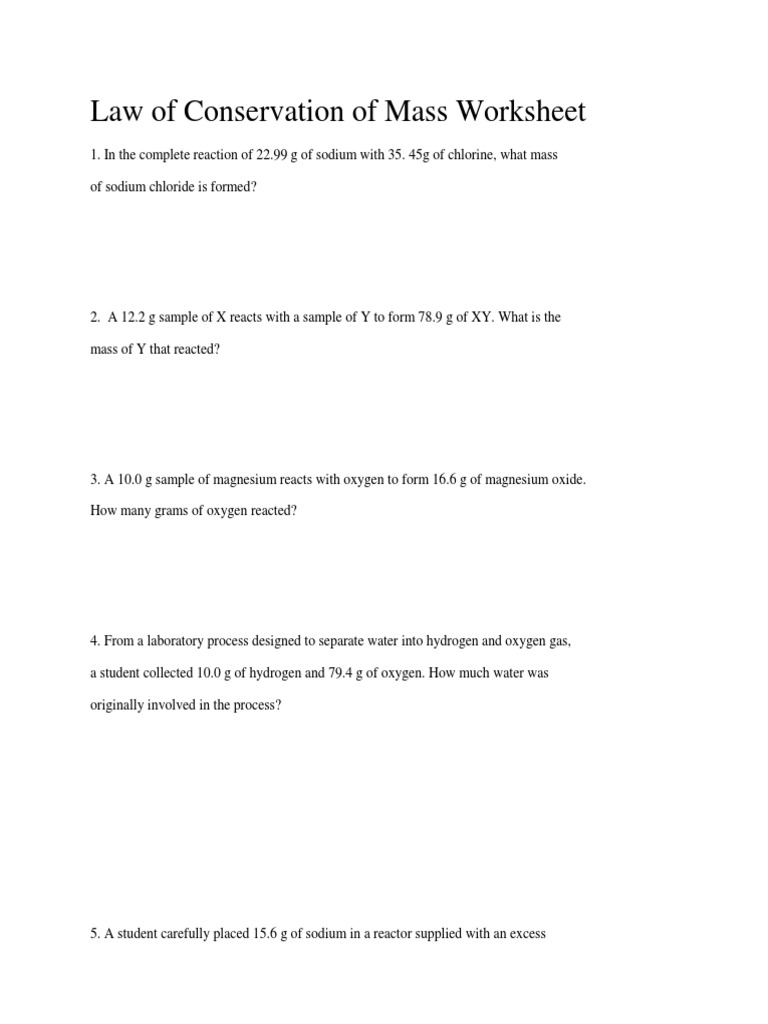 Law of conservation of mass worksheet