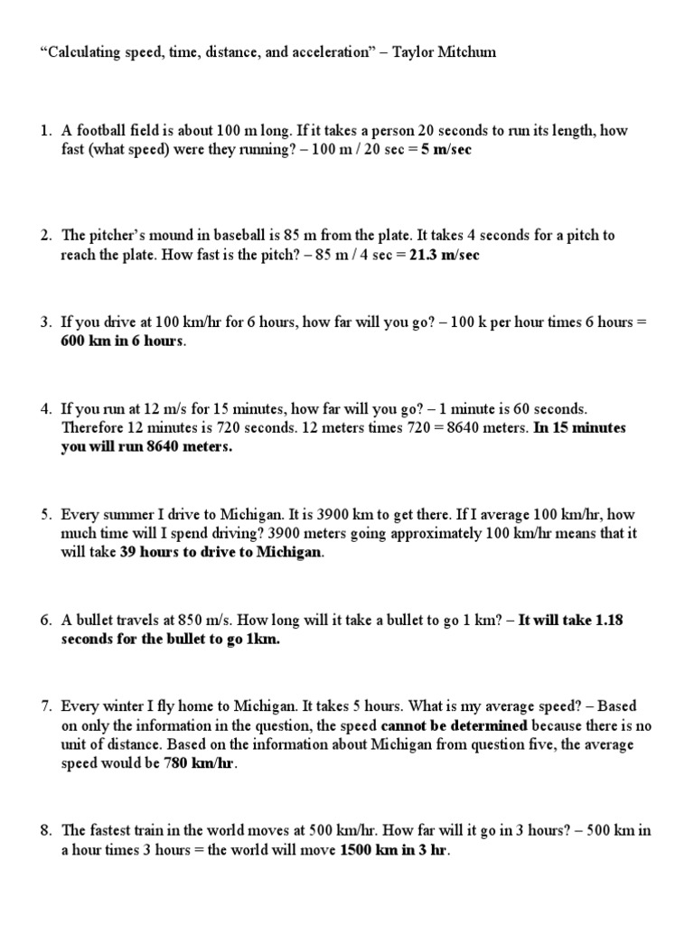 Showing top 8 worksheets in the category speed and velocity with answer key. Speed velocity and acceleration problems use your own paper and show all work. You can use a calculator but you must show all of the steps in the spaces provided. Use the speed formula to calculate the answers to the following questons.