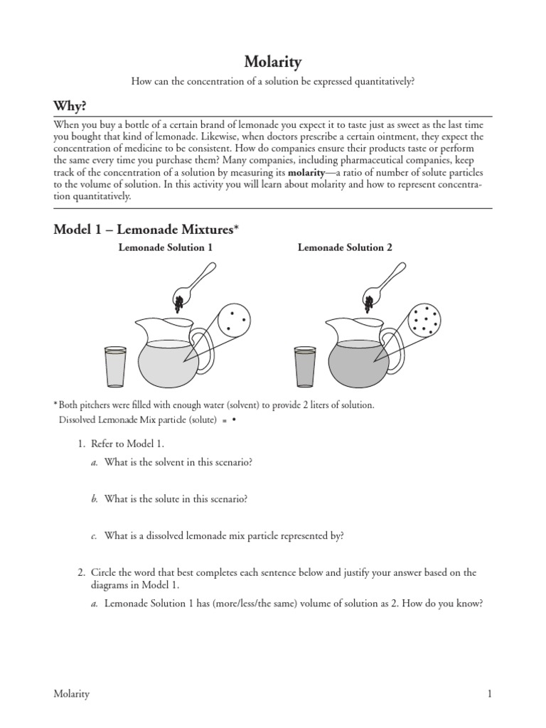 solutions worksheet 1 molarity answer key