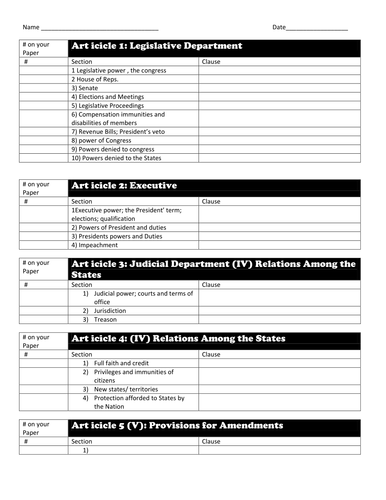 Constitution scavenger hunt worksheet Objectives: Introduce the U