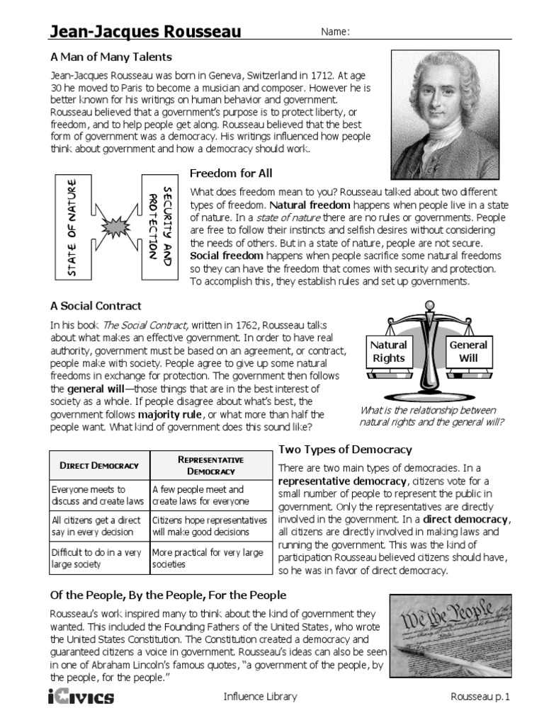 Icivics Rousseau Jean Jacques Rousseau Democracy