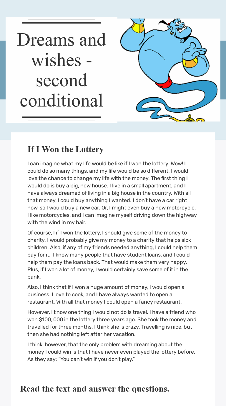 Dreams And Wishes Second Conditional Interactive Worksheet By Mara Benjamin Wizer Me