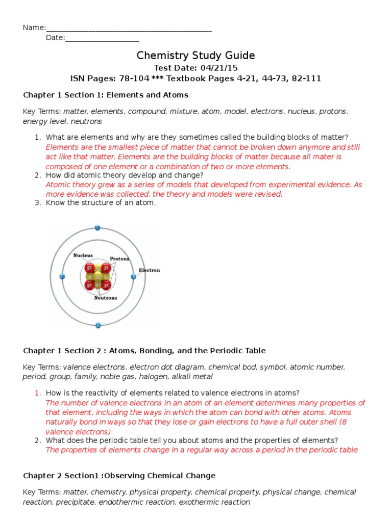 Observing chemical change worksheet answers