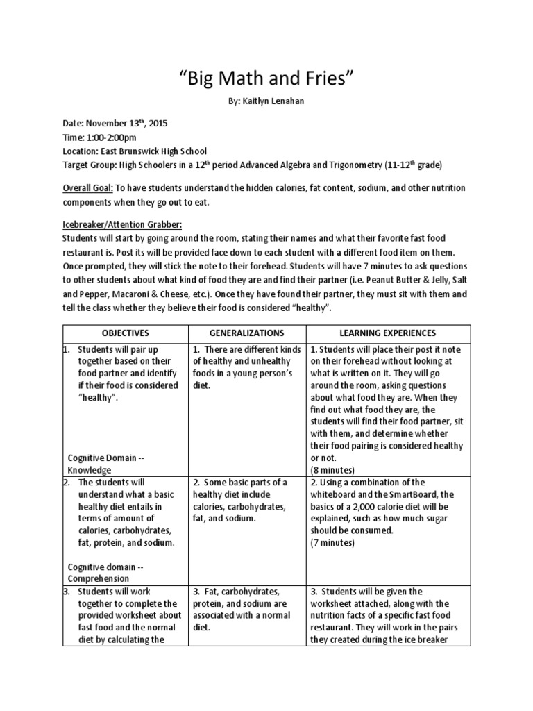 Big Math And Fries Lesson Plan Dicas Nutrition Facts Label Meal