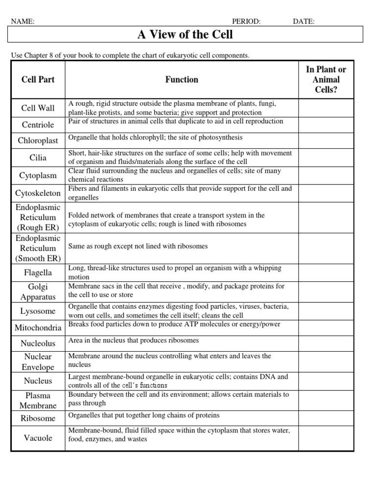 764 Biology 12 Unit D Cell Biology Cell Structure Chapter 3 Review Worksheet Key Biology 12 Chapter 3 U2013 Review Worksheet Answer Key A Cell Course Hero