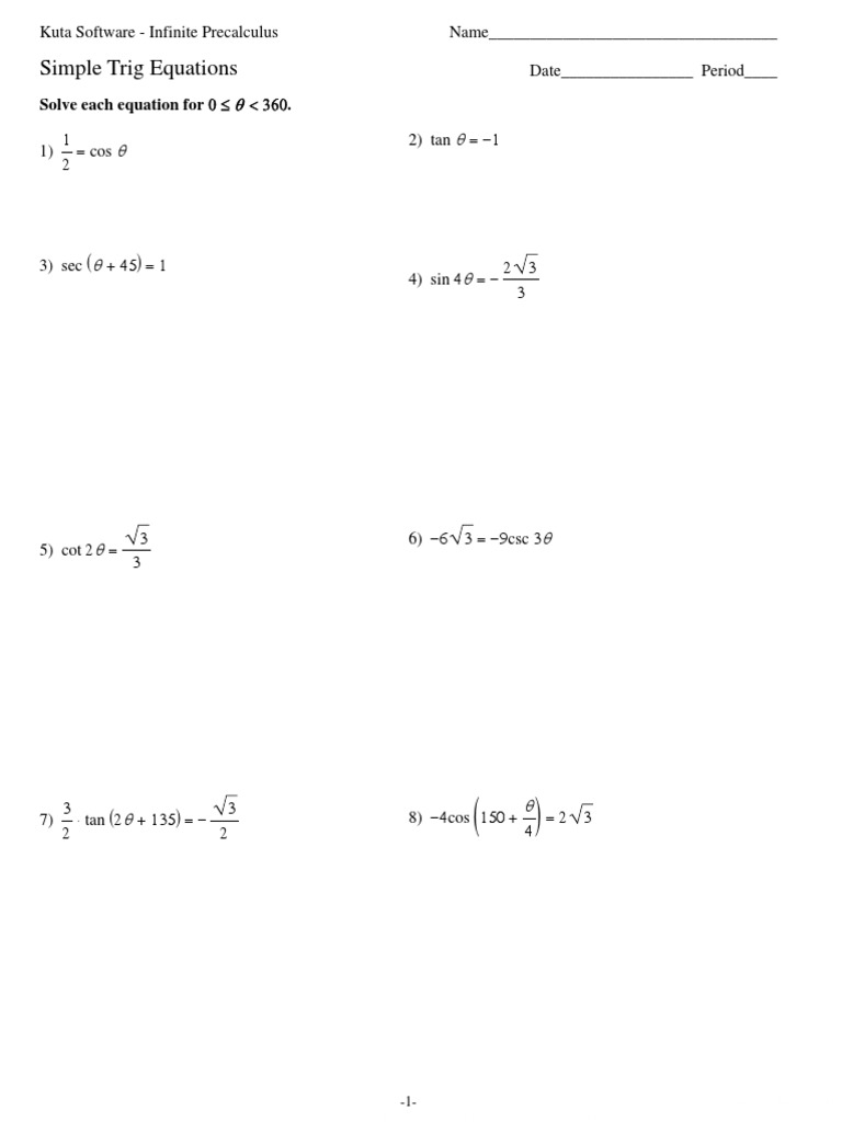 Trigonometric Equations Part 1 Solving Trig Equations Worksheet Critical Thinking Teaching Resources