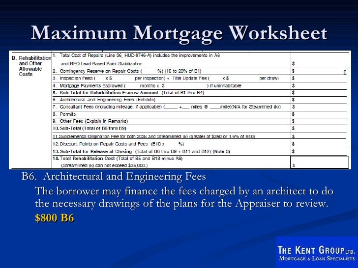 Check out HUD’s Maximum Mortgage Worksheet for more information; Find an FHA 203k consultant if your home improvement costs will exceed approximately $31,000 A mortgage that gives the mortgagee a security right after first, second, and third liens have been satisfied
