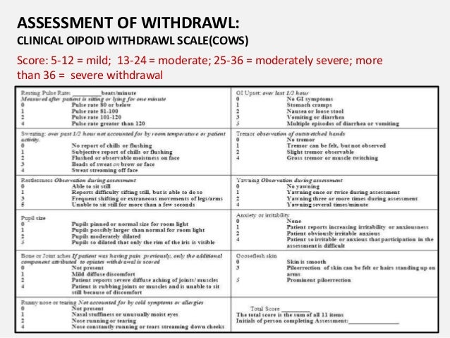 Cows worksheet opiate withdrawal.