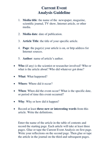 Current Event Analysis Activity Worksheet Content Literacy Current Event Analysis Current Events Worksheet Current Events