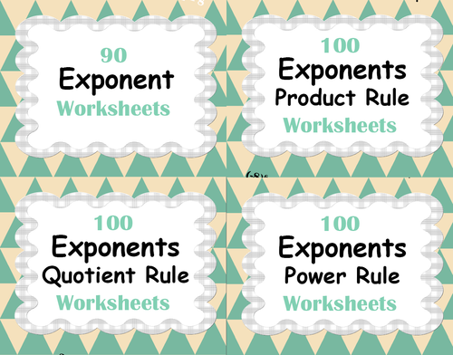 Exponents Worksheets Bundle Product Power Quotient Rule Teaching Resources