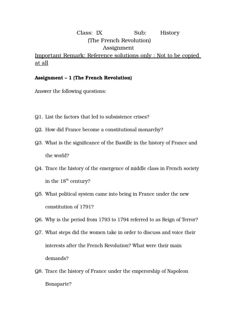 Ncert Solutions For Class 9 Social Science India And The Contemporary World I Chapter 1 The French Revolution