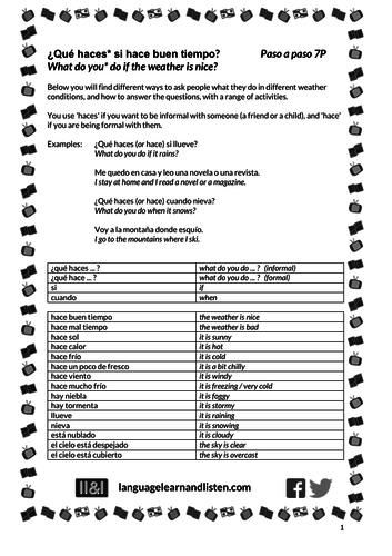Que Haces Si Hace Buen Tiempo What Do You Do If The Weather Is Nice Teaching Resources