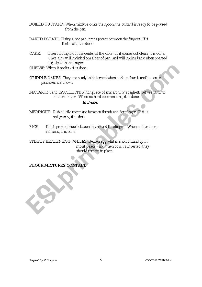 Cooking terms worksheet answers