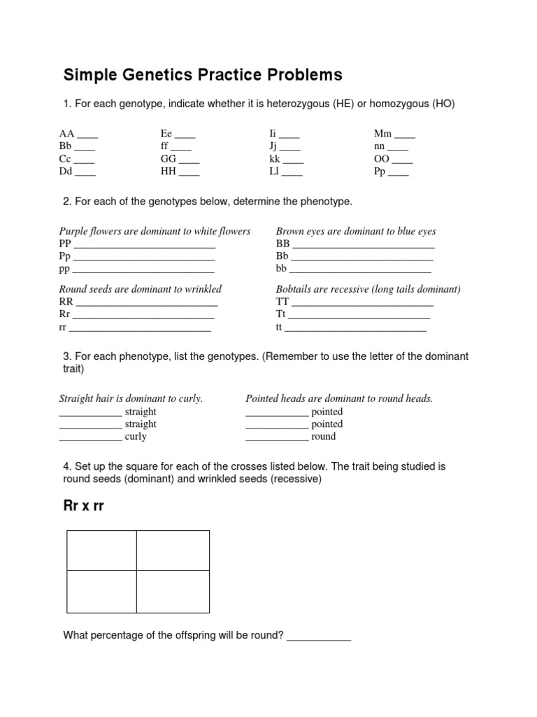 Genetic Practice Problems Genetics Practice Problems Simple Worksheet Source Http Www Biologycorner Com Worksheets Basicgenetics Htm 1 For Each Course Hero