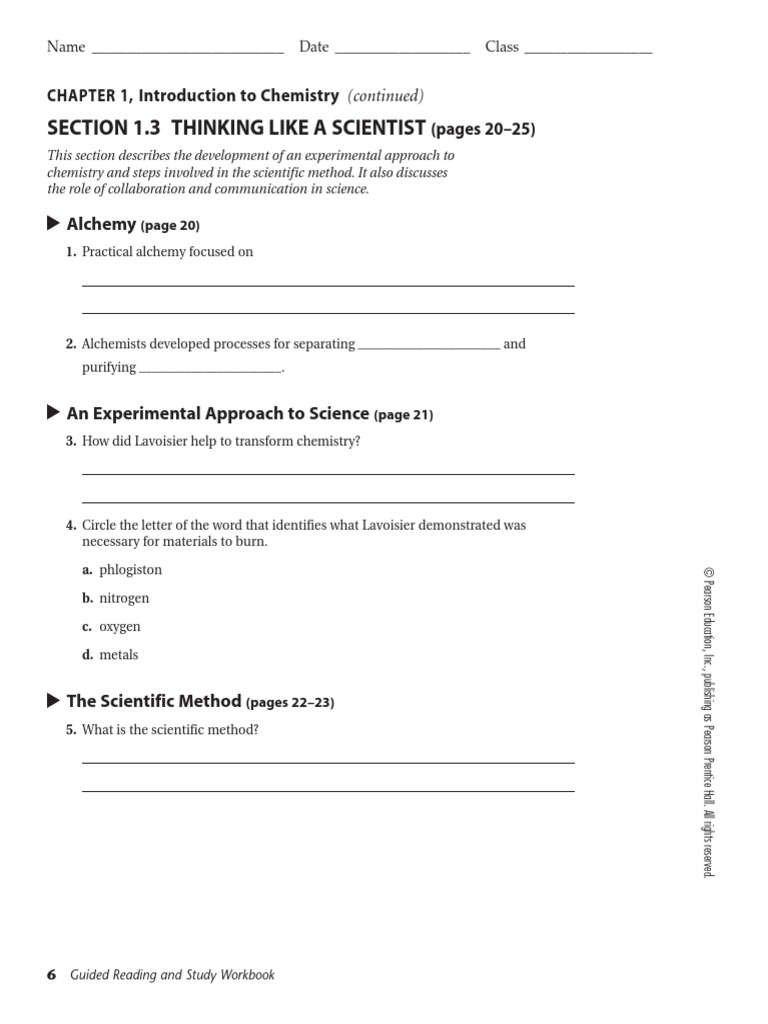 Chapter 1 introduction to chemistry worksheet answers