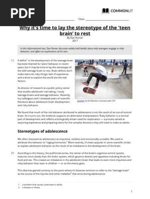 Commonlit Why It S Time To Lay The Stereotype Of The Teen Brain To Rest Student Pdf Impulsivity Adolescence