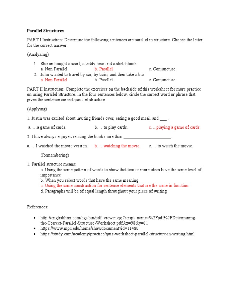 Selecting The Right Parallel Structure Worksheet Pdf Classroom Cognitive Science