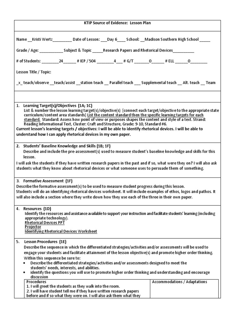 Ktiplessonplanpaperandrhetoricaldevices 2 Rhetoric Educational Assessment