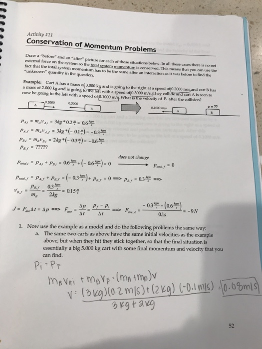Solved Activity 11 Conservation Of Momentum Problems Dra Chegg Com