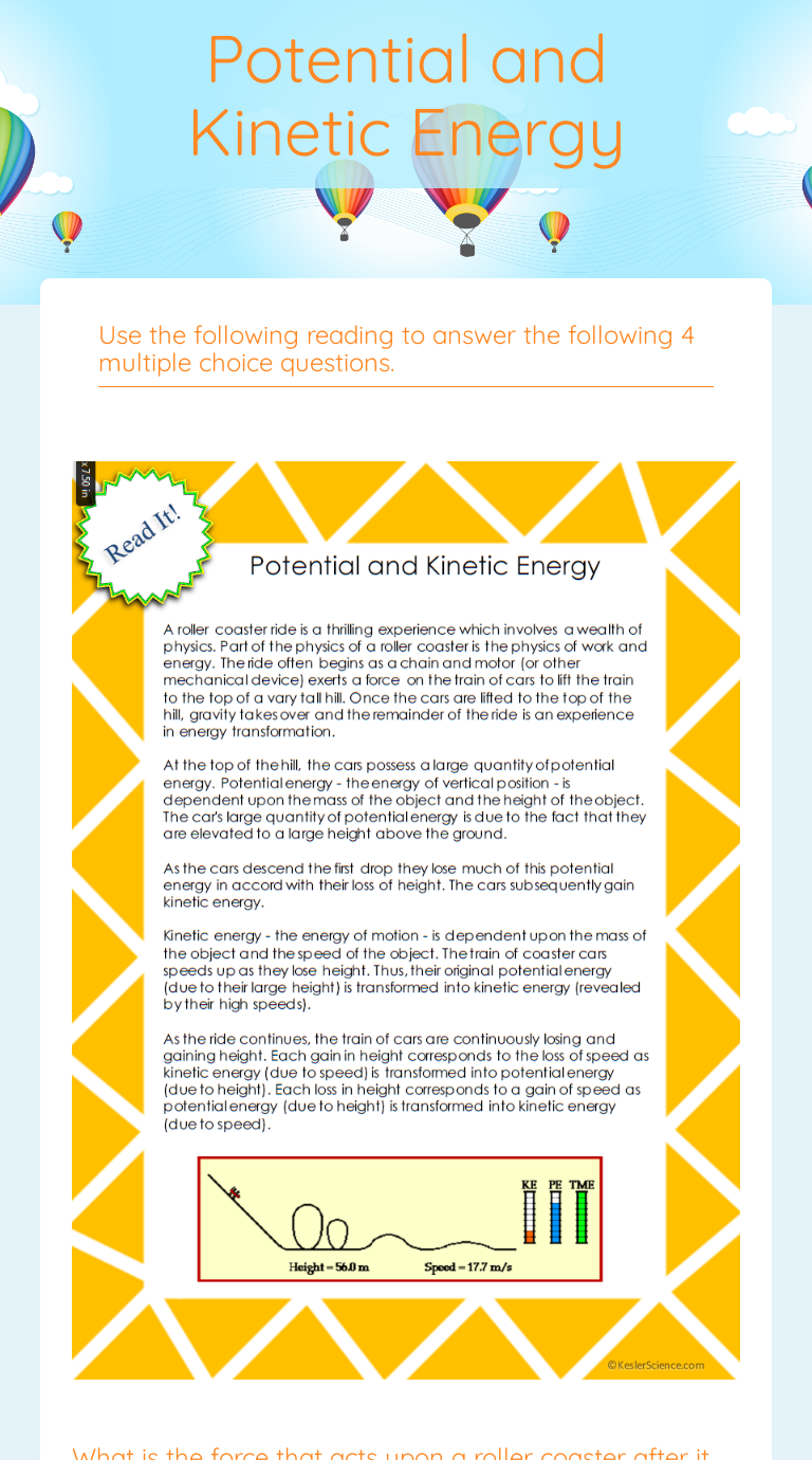Potential Versus Kinetic Energy Interactive Worksheet By Megan Stanley Wizer Me