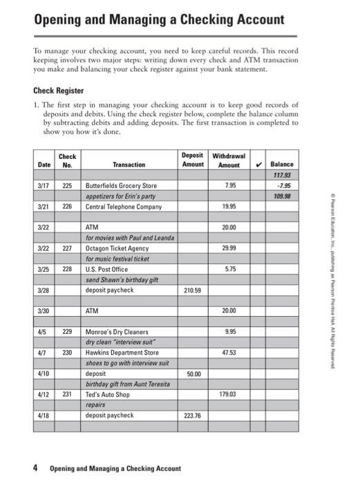 Balancing Checkbook Pdf Balancing Your Checking Account Take A Look At This Blank Register Then Fill It In To Organize These Activities Record Your Course Hero