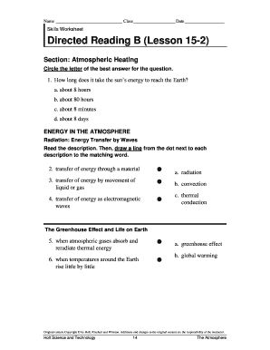 Fillable Online Name Class Date Skills Worksheet Directed Reading B Lesson 152 Section Atmospheric Heating Circle The Letter Of The Best Answer For The Question Fax Email Print Pdffiller