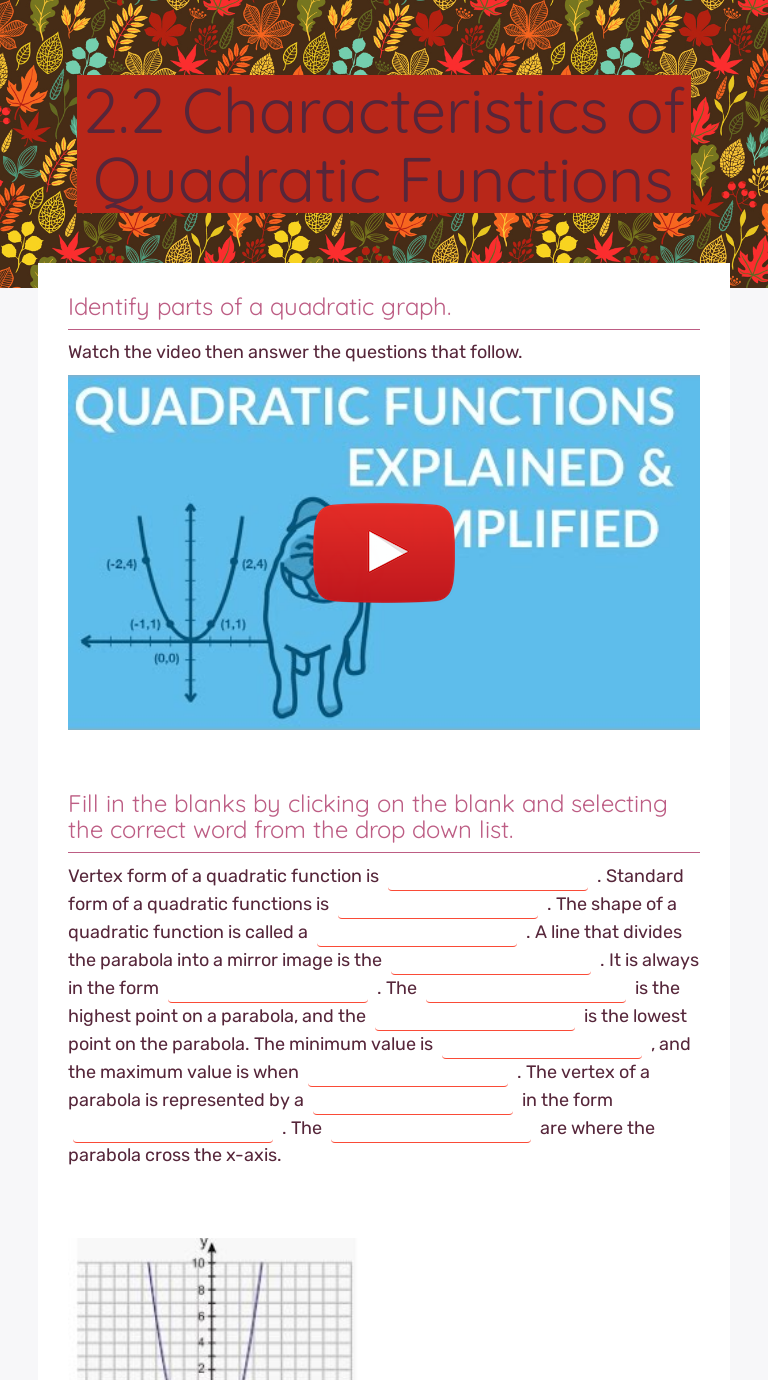 2 2 Characteristics Of Quadratic Functions Interactive Worksheet By Simone Hart Wizer Me