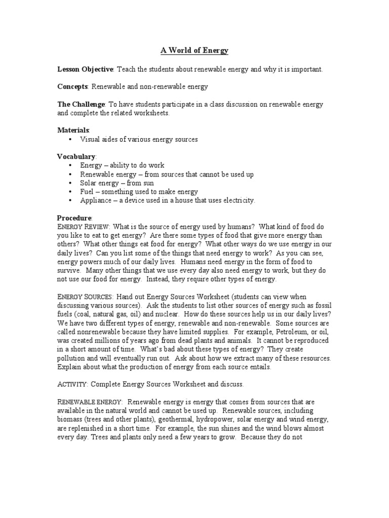 Renewable And Non Renewable Energy Worksheets 99worksheets