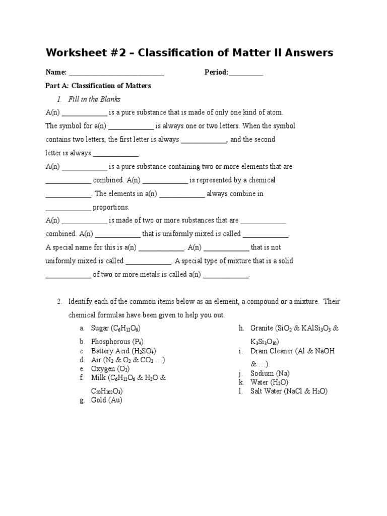 Classification Of Matters Worksheet 2 Answers Chemical Compounds Reactivity Chemistry