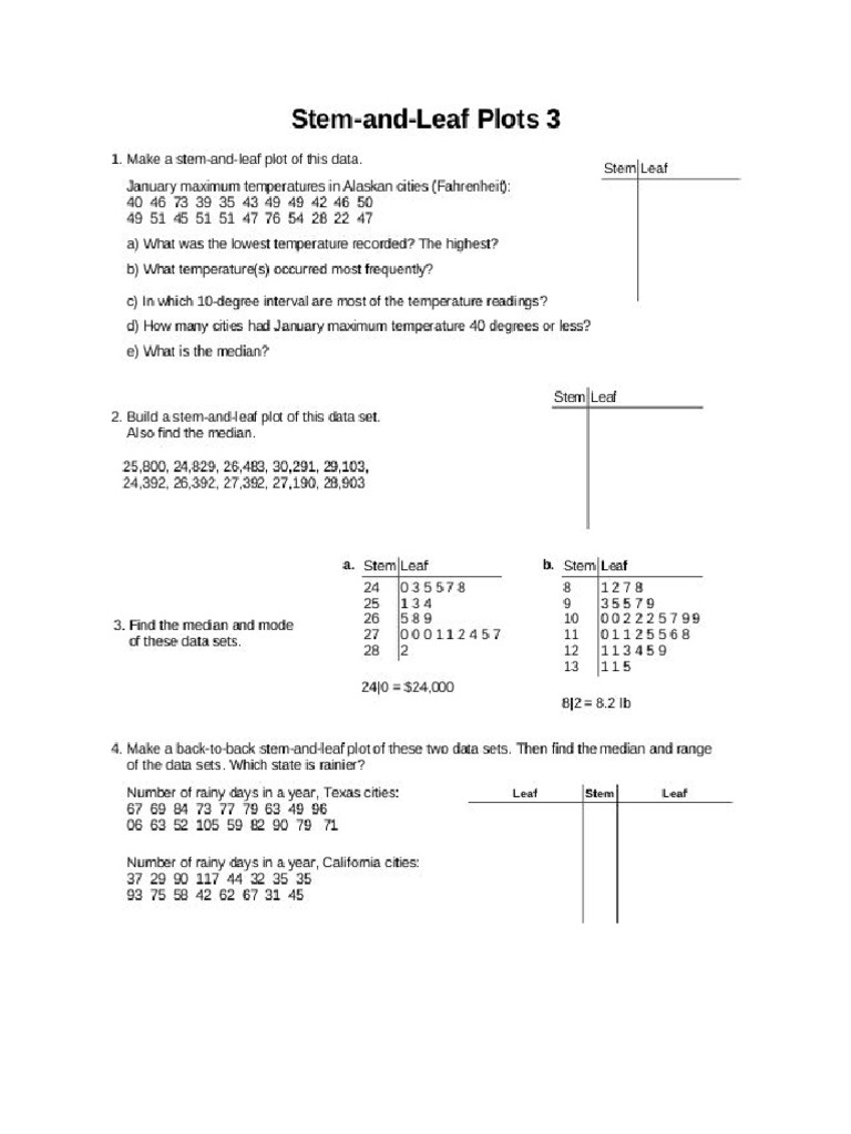 Stem And Leaf Plot Homework Help Stem And Leaf Plot Worksheets