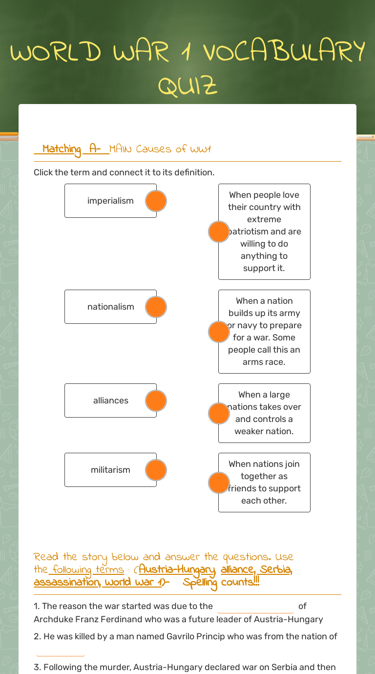 World War 1 Vocabulary Quiz Interactive Worksheet By George Hiler Wizer Me