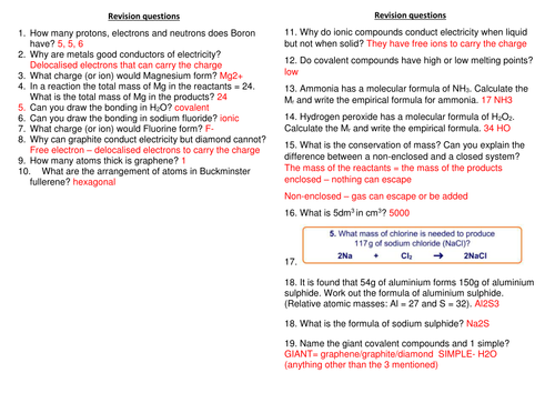 Worksheets For Aqa 9 1 4 1 Atomic Structure The Periodic Table 4 1 1 1 Atoms Elements Isotopes Teaching Resources