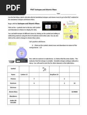 Phet Isotopes And Atomic Mass Answer Key Isotopes And Atomic Mass