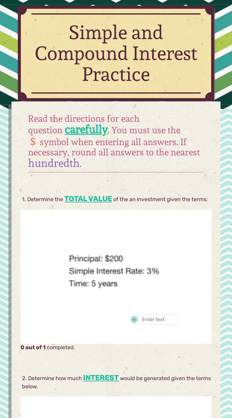 Simple interest worksheet part 2 answers