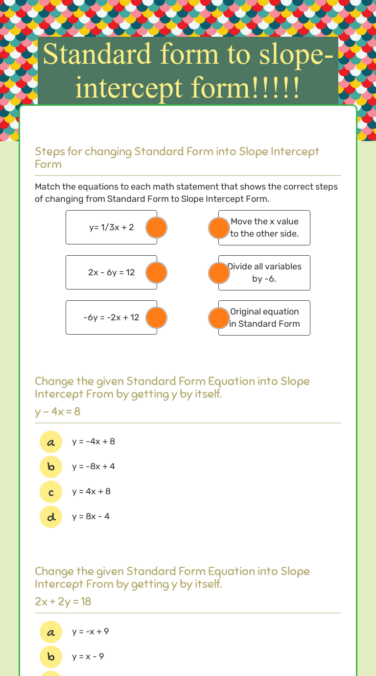 Standard Form To Slope Intercept Form Interactive Worksheet By Ashley Redding Wizer Me