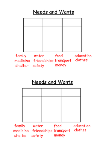 Needs And Wants Sorting Worksheet Have Fun Teaching