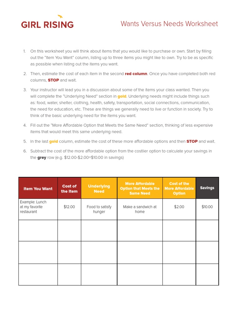 Wants Vs Needs Worksheet Education Com Kindergarten Social Studies Social Studies Worksheets Economics Lessons