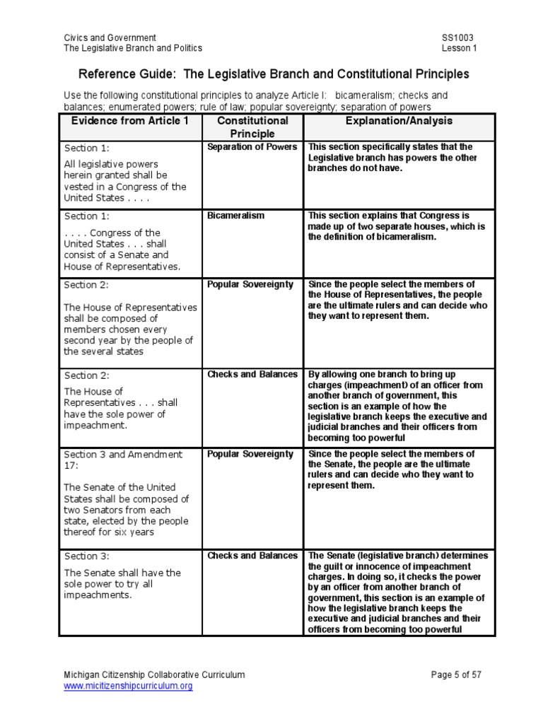 Applying The Principles Of The Constitution Answer Key Federal Government Of The United States Separation Of Powers Under The United States Constitution