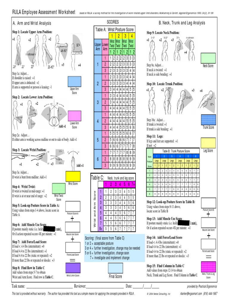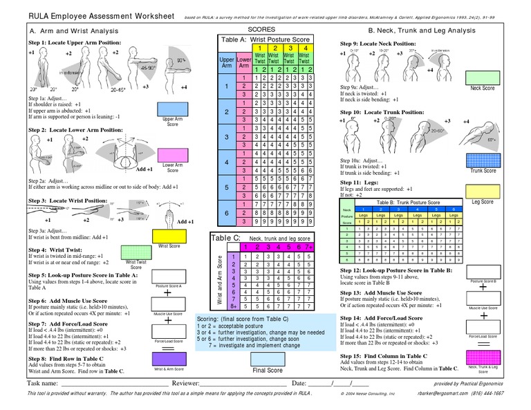 Rula Work Sheet Pdf Rula Employee Assessment Worksheet Complete This Worksheet Following The Step By Step Procedure Below Keep A Copy In The Course Hero