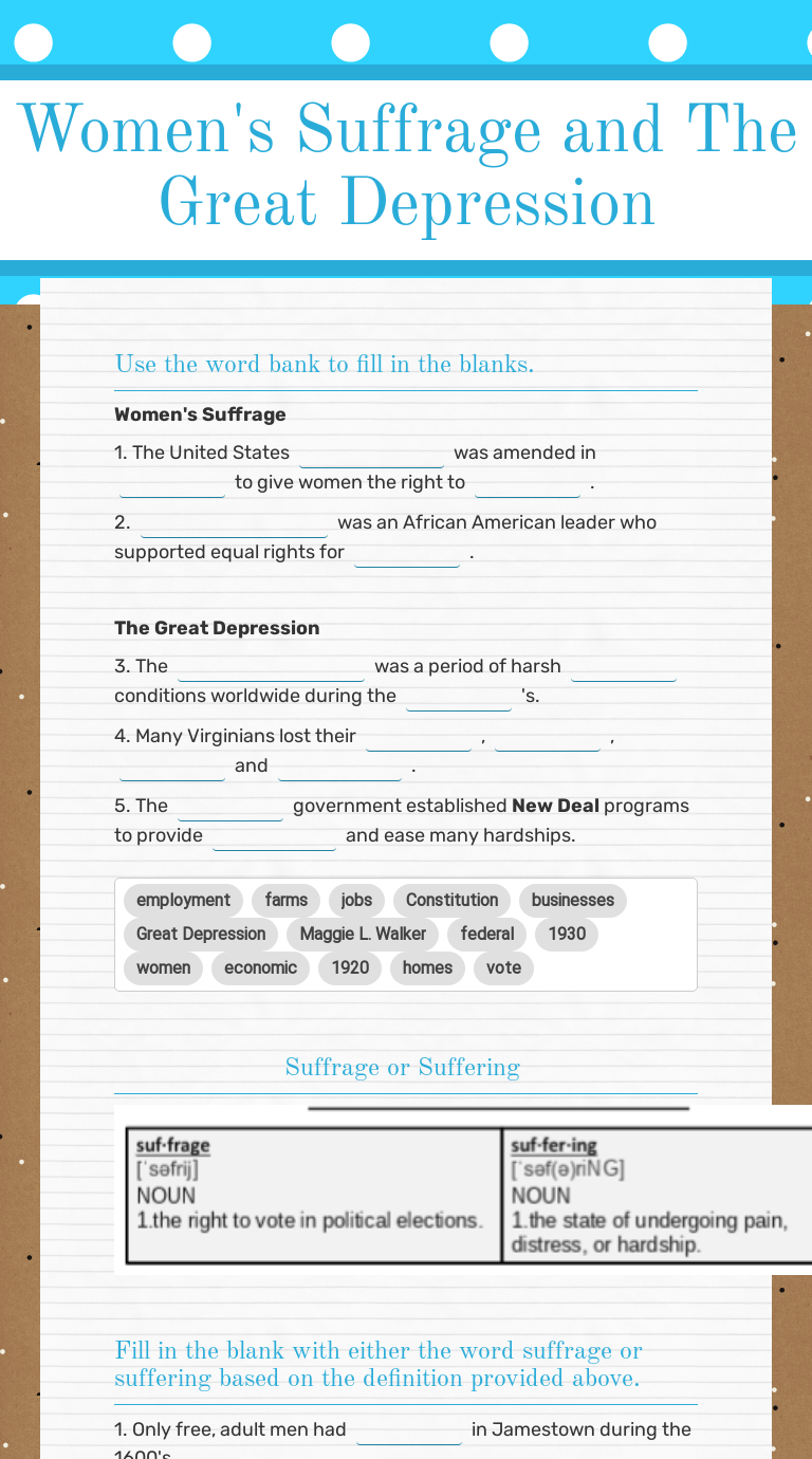 Great Depression Worksheets Middle School