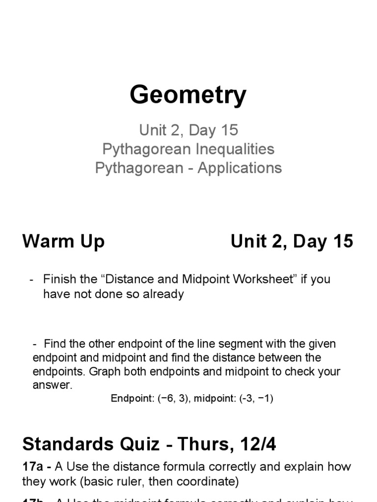 Geo 14 15 Unit 2 Day 15 Pythagorean Inequalities Distance Triangle