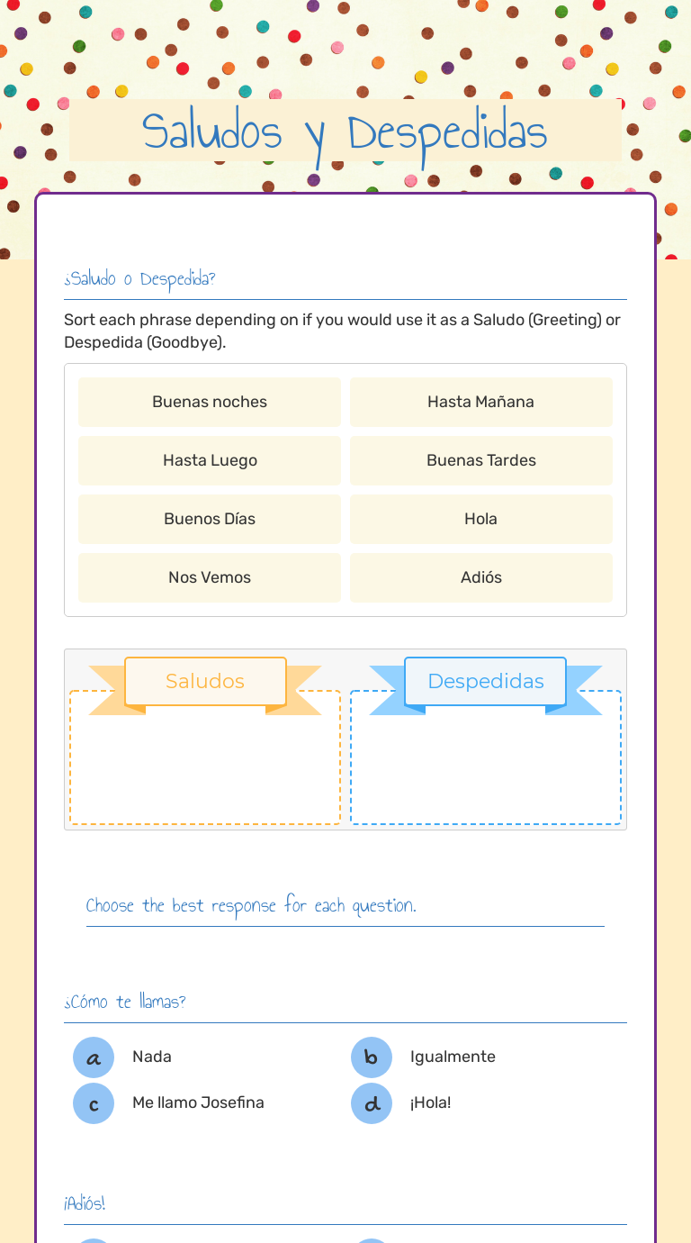 Saludos Y Despedidas Interactive Worksheet By Deborah