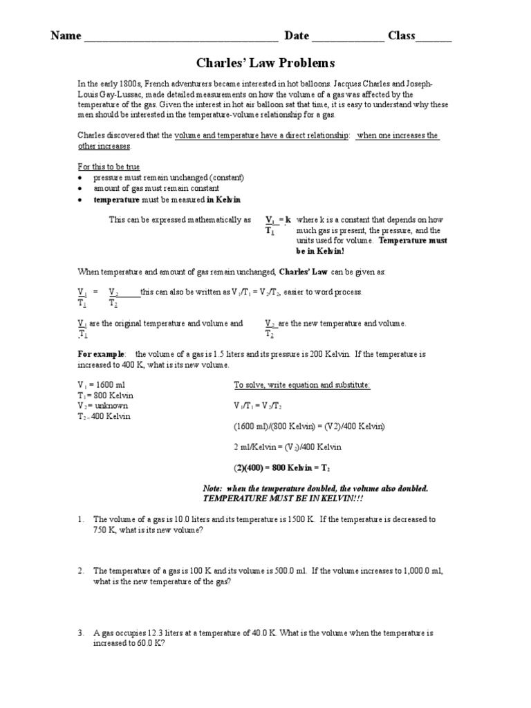 Practice Charles S Gas Law Worksheet 1 0 Answer Key
