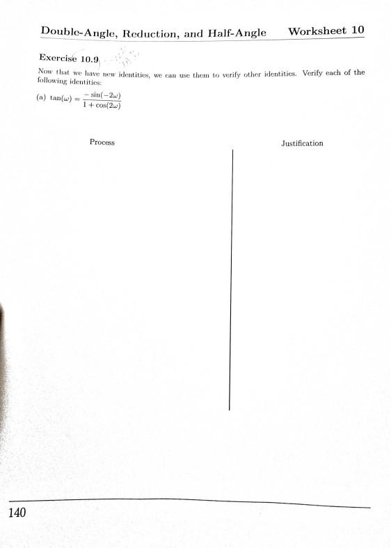 Double Angle Reduction And Half Angle Worksheet 10 Chegg Com