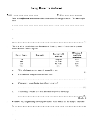 Sources Of Energy Worksheets Teachers Pay Teachers