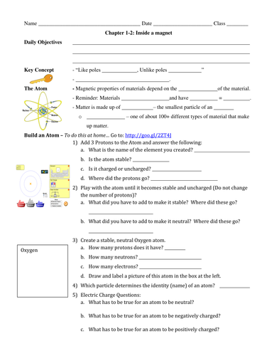 Physics 1 2 Atom Basics And Inside A Magnet Powerpoint And Guided Notes