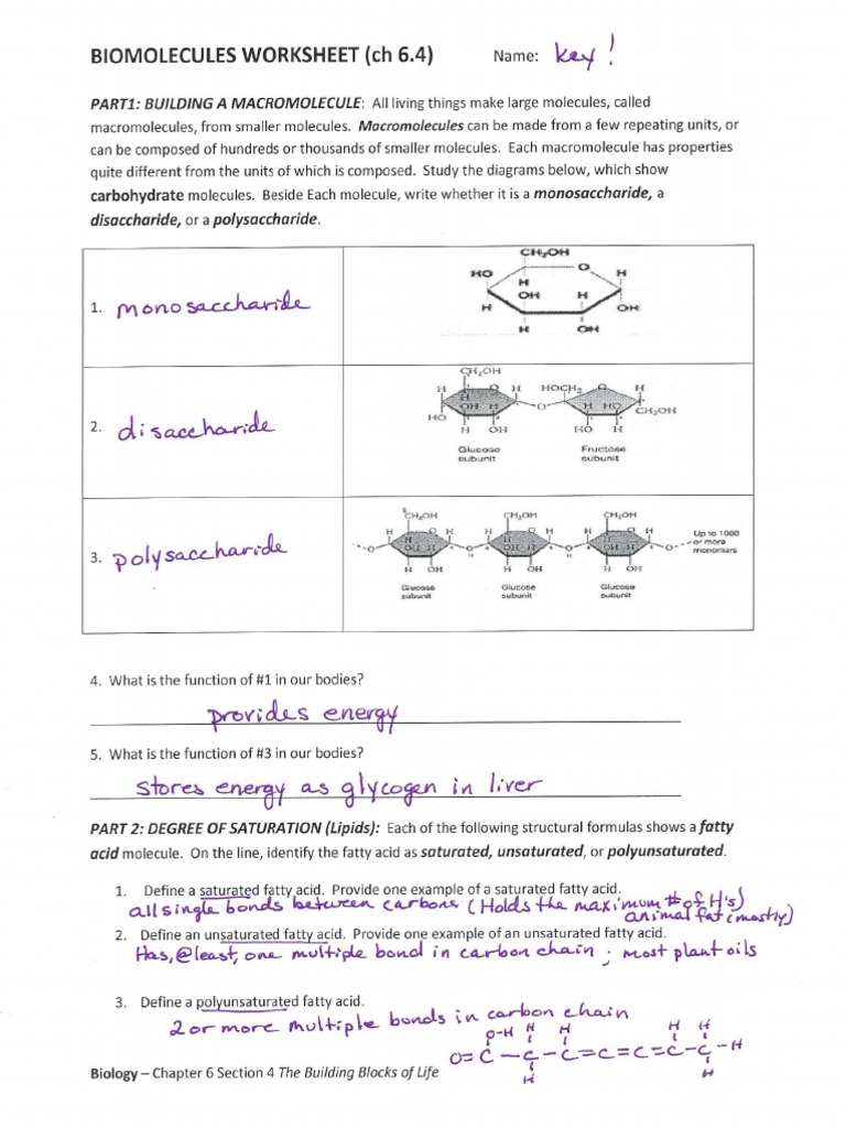 Chemistry In Biology Chapter 6 Worksheet Answers