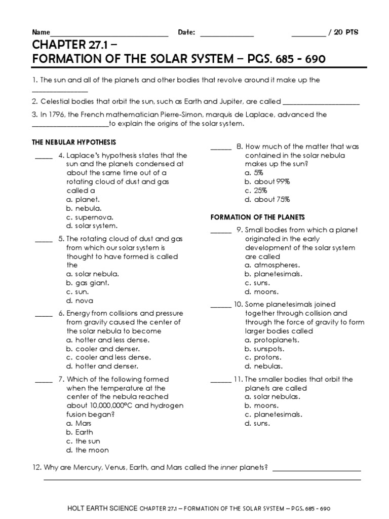 Formation of the solar system worksheet answers