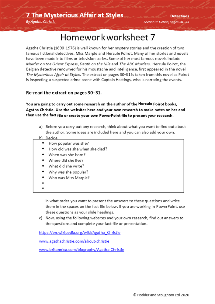 Homework Worksheet 7 The Mysterious Affair At Styles Boost